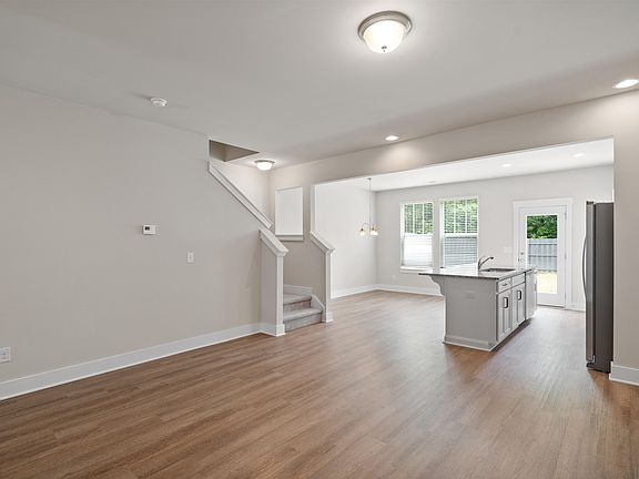 Townhomes under $300k convenient to Downtown Franklinton, Youngsville & Wake Forest! Elevation 8 Litchfield, standard configuration. Luxury Vinyl Plank throughout first floor & wet areas upstairs. Upgraded carpet on stairs and living areas upstairs. Open wrought iron railing on first floor and half wall along stairs on second level. Gas appliance package. Stainless undermount single bowl sink in kitchen. Pendant lights over the island. Level 2 quartz counters. Level 1 Cabinets. Double bowl raised vanity in bath 2. Standard ceiling in owner’s bed. Tile shower in owner’s bath. Fiberglass shower/tub combo in bath 2. Single car garage and driveway. **PHOTOS OF SIMILAR HOME, NOT ACTUAL HOME**