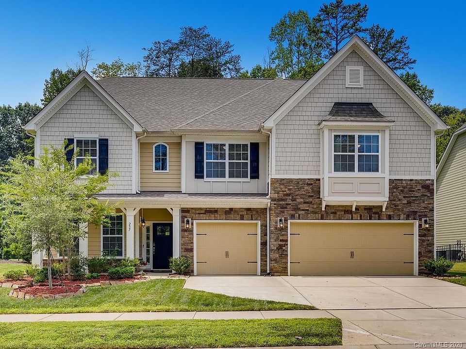 Beautiful move in ready 5 bed 4.5 bath home situated on a flat corner lot with community Lake access. This home features an office with French doors, formal dining room, and a bright and open great room. This flows into the gourmet kitchen with beautiful granite countertops, gas cook top, large center island, and lots of cabinet space. First floor guest suite with private full bath. Hand-scraped hardwoods throughout the main floor. Huge walk in pantry, and drop zone off from 3 car garage. Second Floor features Master suite, with separate sitting area, oversized closet with en-suite bath with garden tub, and glass shower. 3 large secondary bedrooms with plenty of closet space. Loft area perfect for kids playroom, tv/game room, or craft area. Covered patio leads to fire pit to enjoy outdoor living. Lake access community which features gazebo and paddleboat launch, community pool, clubhouse, playground, dog park, and walking trails. Easy access to highways, shopping and dining.