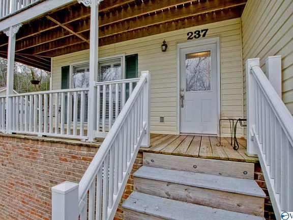 A little piece of paradise! This 2.7 acre estate is nestled at the end of the road with gorgeous mountain views from the front and plenty of private acreage in the back. Sit and rock a while on one of two levels of wrap around porches complete with a very private screened back porch. This home boasts an updated kitchen with granite countertops, custom cabinetry and new appliances. Retreat to the owner's suite where you'll find beautiful views, a fireplace, updated bath and large walk-in closet. This home is a hidden gem! Convenient to Huntsville, Redstone Arsenal and Lake Guntersville!