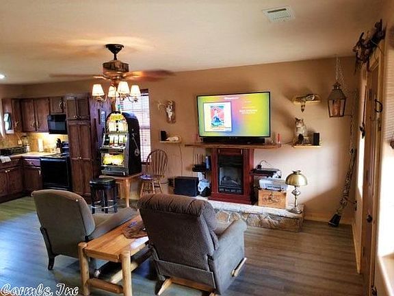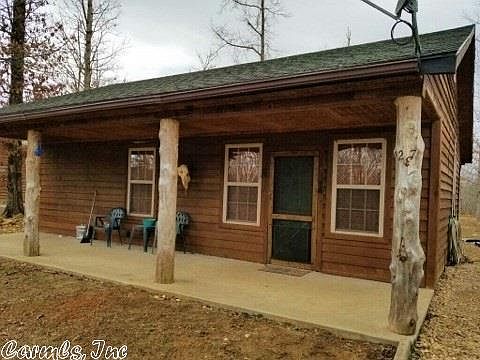 Starter home or vacation home this cabin is perfect! Open living room/Kitchen with large master bedroom and bath. Storage/shop building to help with hobbies or storage. Some owner financing may be possible call for details. Furnishings can convey with home as is