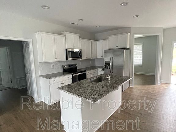 Don't miss out on this beautiful, like new, 4 bed 2.5 bath home on a huge nearly THREE acre cul-de-sac lot. 1st floor main suite with tray ceilings, double walk in closets and a large shower. The kitchen has gorgeous cabinets, granite countertops, tile backsplash , stainless steel appliances and an island. The living room features built in bookshelves, a fireplace and offers an oversized garage and covered front porch. Pets are negotiable with approval, screening and fees. The home will be available the first week in April. It is 2 miles from downtown Zebulon but offers a rural living feel. Apply online today!