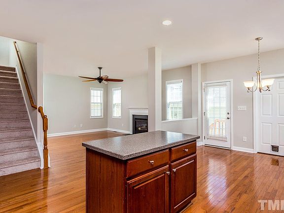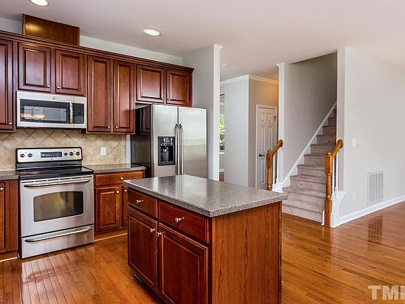 Beautiful 2.5 story home in Apex. Hardwoods tie together the entire first floor. Large eat in kitchen with solid surface countertops and stainless steel appliances is open to the living room. Enjoy family dinners in the large formal dining room. On the second floor there is a spacious master suite featuring a soaker tub, separate shower, and dual vanities. Bedrooms 2 and 3 share a balcony and guest bathroom, also on the second floor. The 3rd floor is a huge finished bonus space. Private driveway.