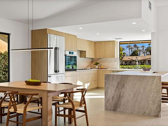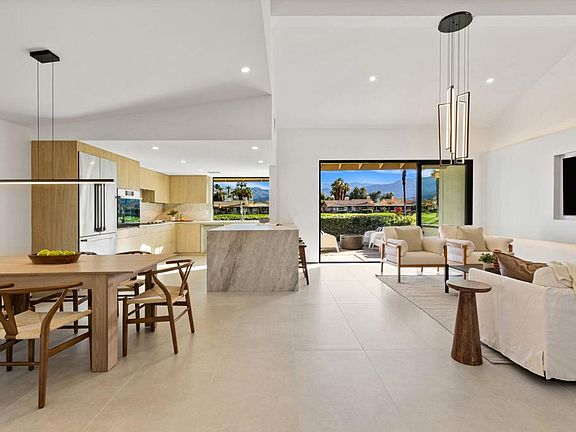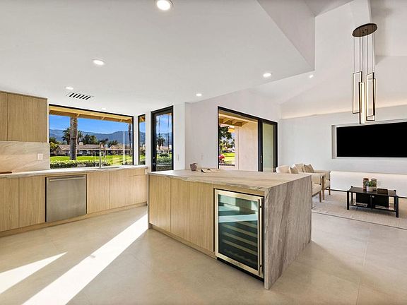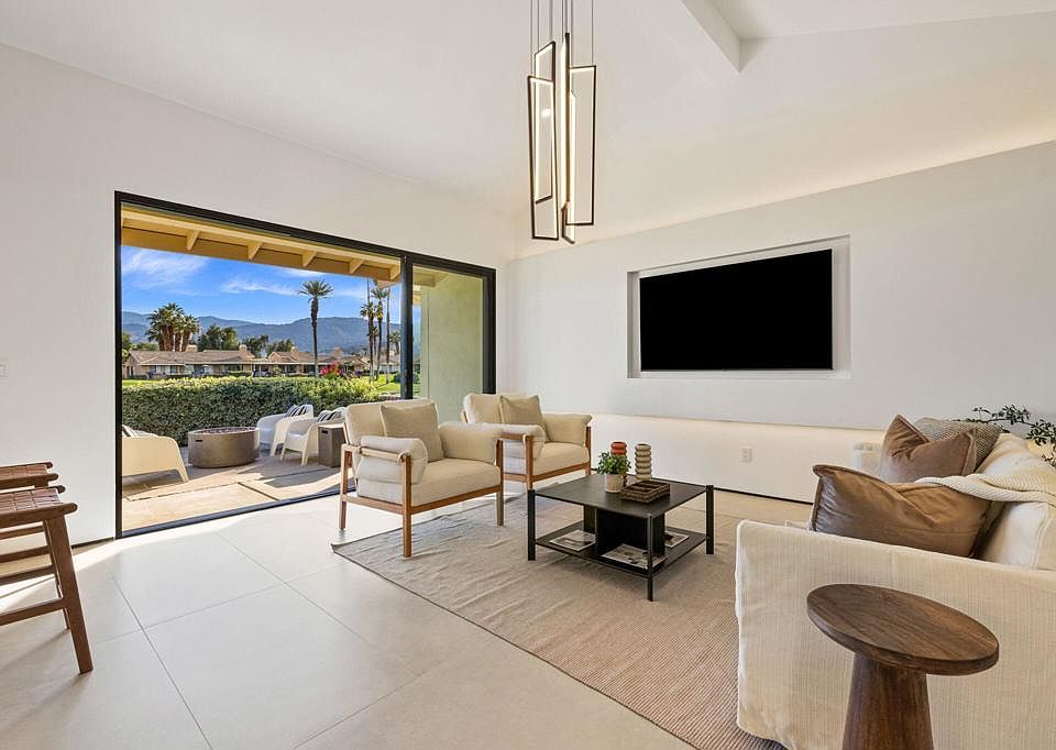 Home is being sold fully furnished! Welcome to what might possibly be one of the most incredibly re-designed homes in all of Monterey Country Club. Overlooking the award winning Ted Robinson golf course, this elevated South facing golf and mountain view home has everything going for it. From the moment one enters through the solid glass and aluminum front pivot door one knows they have arrived. The living space is grand with a fully opened great room concept having a dramatic 18ft+ high cathedral ceiling with a floating TV wall and stacking door walls facing the south patio. Throughout the home one will notice the no baseboard detail that has been carefully designed with a fry reflex metal reveal making it look as the walls are all floating. The kitchen features European designed cabinetry paired with custom fabricated porcelain countertops and Dacor and Thermador appliances. All the interior doors are solid and are architecturally designed with the door jambs being mudded in the drywall and go from floor to ceiling without a ceiling door header and casing. Other notable features are level 5 smooth drywall, brand new windows and sliders, along with the custom front pivot door + kitchen door, 2'x4' ft tile flooring throughout, imported Italian tile installed in bathrooms, and an aluminum garage door + motor. The entire home has been remodeled with permits! Call to schedule your private showing and you might not want to miss out on this opportunity.