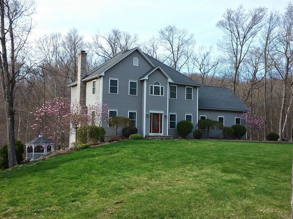 Edible plantings line the sidewalk leading up to this handsome Colonial home. Nestled on a 1.5 acre open lot with wooded back drop, the yard is perfect for game playing and gardening. Inside the spacious floor plan moves with ease and delivers an abundance of light through oversized windows. Cherry kitchen a plus - stainless steel appliances a must - granite counters include a large island with gas stove and seating. The living room embraces a stone fireplace, perfect on chilly winter nights. Second floor family room a cozy place to play games or watch TV. Hardwood floors are through most of this home - a beautiful clean look. The walk out basement is perfect for expansion just incase you think you need more space. A desirable design built with quality materials and superb craftmanship. Meticulous! Matchless! Memorable!