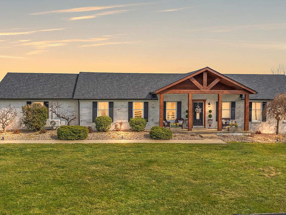 Dream farmstead on 10+ accres perfect for horses or farming! This beautifully renovated 4BR/3BA farmhouse sits on 10+ fenced acres w/high-speed internet & endless possibilities. Inside, enjoy beautiful wood floors in the great room w/gas fireplace that leads to an open eat-in kitchen w/granite & stainless appliances. 2 primary suites allows privacy for all —each w//BA & tiled shower. Large utility room. The gorgeous covered patio w/soaring ceilings overlooks a sparkling above-ground pool. For equestrian & farm life, this property includes: A horse barn w/electric/water, hay loft, 6 (could be 10) stalls, wash bay w/drain/drying rack & tack rm, adjacent paddock & chicken coop. A garage/barn w/100-amp service, concrete floors, two 12' garage doors for parking for up to 6 cars or RV storage, oversized equipment or workshop space. An open-side barn w/space for 8 vehicles. An additional barn & run-in for storage/livestock. With 2 large fields, a stocked pond & gorgeous modern amenities, this rural retreat offers the best of country living. Location is perfect for access to Richmond + multiple trail riding locations & fairground for showing! Contract with 24-hour kick out in place.