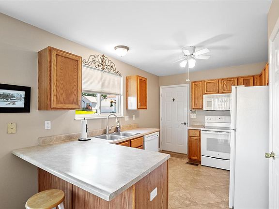 Additional highlights include a full basement with rough in for bath and plenty of potential for finishing, an attached two-car garage, and a lovely front porch as well as back patio, perfect for relaxing on warm evenings. Conveniently located near shopping, and dining, this home offers the perfect blend of tranquility and accessibility.