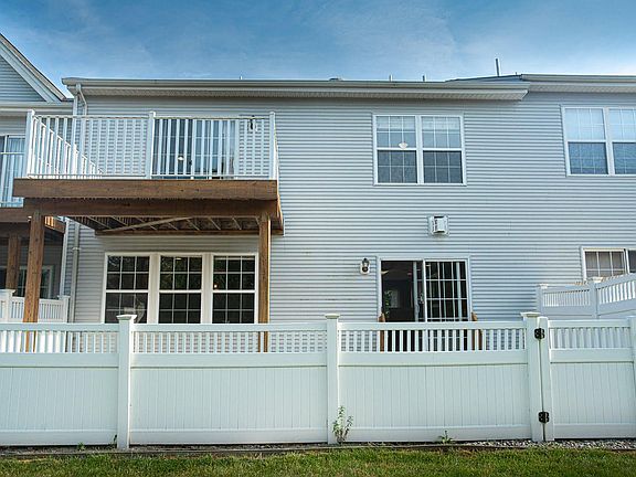 Move right in to this large townhome with upgrades galore. Greet your friends in the two story foyer and welcome them into your lovely kitchen. The eat-in kitchen features ceramic tile flooring, upgraded cabinets with Corian counters with one-piece sink, self-cleaning stove, GE Profile microwave which doubles as a convection oven, side-by-side refrigerator with exterior ice/water and ultra-quiet Bosch three rack dishwasher. The triple window in the breakfast room lights the kitchen from the front and the sliders leading from the great room to the paver patio bring sunlight into the back of the home. The great room has hardwood floors, custom builtin bookshelves and a two sided gas fireplace that also serves the living room. The living room and dining room have a nice flow separated by a pillared half-wall both rooms have crown molding and hardwood floors. A nice sized powder room with linen closet complete the downstairs. Upstairs double doors provide a gracious entry into the cathedral ceilinged master with double closets and slider to an oversize deck.The master bath has a marble tiled soaking tub with double sinks and stall shower. From the upstairs hall find two more bedrooms with large closets, a full bath and laundry. Fully finished basement wired for speakers for a home theater area. Basement has a office space with french doors as well as space for a dry bar and storage. Located within minutes of Princeton and Pennington borough. This home has easy access to public transport to Philadelphia and New York. Renters will have access to community pool and tennis courts. Owner pays association fees