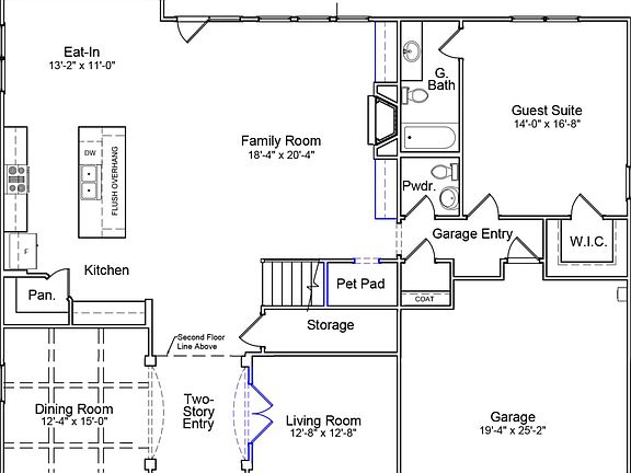 The Rutledge is an impressive home with a two-story foyer, 5 Bedrooms, 4.5 Baths, Formal Dining and a home office, upstairs Bonus, and a Private Guest Suite on the main floor. Painted in a beautiful Designer Paint Scheme of Passive, Hardwoods throughout the home leads you to an open concept kitchen with an upgraded Gourmet Kitchen, Farmhouse Sink, Stone Grey Cabinets and Quartz Countertops overlooking your Family Room and cozy Fireplace flanked by built-in bookcases. The spacious primary suite includes a Sitting Area, Exercise Space, and a bathroom fit for royalty with a luxurious Deep Soaking Tub, large walk in Ceramic Tile Shower with seat, Window Seat, and three closets! Two secondary bedrooms share a Jack & Jill bathroom. Your pet will love the new PET PAD Option we've added. Relax outside on the Covered Porch overlooking a beautiful backyard with 6 zones of irrigation. There is extra driveway pad for another parking space and extra patio for a grill! Ready this summer. BEING BUILT. STOCK PHOTOS. OPTIONS AND COLORS MAY VARY