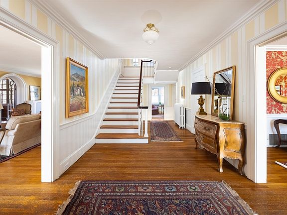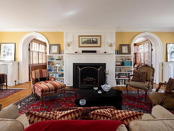 Set on a corner lot in a beautiful Brookline location near Eliot Street Park, this grand 11-room Colonial Revival-style residence offers an amazing floor plan with exquisite architectural details, abundant natural light, and pretty views from every room. The elegant foyer leads to the main rooms and beyond, creating a design that is welcoming and well-suited for entertaining. There are five-to-six bedrooms, three full, and one-half bathrooms. Period appointments reflecting the era and style of house include oversized arch windows, handsome molding, built-ins, large archways, multiple fireplaces, and gleaming hardwood floors. A gracious staircase, with lovely craftsmanship, leads to the next level which houses the primary bedroom with a fireplace and bathroom, as well as other bedrooms, offices, and bathrooms. The grounds are well-manicured and include a private yard with a built-in stone barbecue area, ample green space, and a garage.