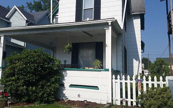 Updated handicap accessbile bathroom on 1st floor. A wheel chair fits through the door. The first floor has a nice flow from the great room to the kitchen, the laundry room and then the back yard. The one car, 2 story garage has access from the back ally; the second story can be accessed from stairs and has wood flooring; add power to it and be creative with the space. Sit & relax with friends on the front porch or relax on the small balcony off the second floor. The back yard is fenced in & has two lovely veggie gardens. Great investment potential. Being sold as-is.