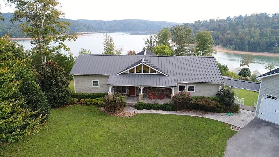 Built for entertaining Lake Style, this 5 bedroom, 4&1/2 bath custom build home offers an open floor plan with expansive views of the main channel of Norris Lake and Chuck Swan Wildlife Area from the great room with stone fireplace, dining , custom kitchen, 2 master suites and walk out decks. Beautiful wood cathedral ceilings, floors are hardwood, tile and carpet. Laundry room is on the main level.The lower level has a huge family room with fireplace, 3 bedrooms, and walk out deck. Over 4000 sq ft of living space situated on a gently rolling 0.97 ac lot. Roof is metal and exterior is hardy plank and vinyl shakes. Oversized detached 2 car garage w/10' doors and unfinished area above garage. Quick access to lake and community covered dock.