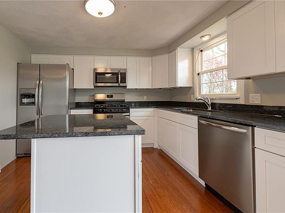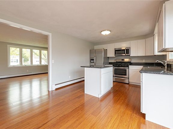 Updated and renovated Raised Ranch with attached 1 car Garage. Brand new spacious eat-in-Kitchen with new granite counters, all new stainless steel energy efficient appliances with gas cooking and beautiful new wood cabinets. Brand new hardwood flooring in Living room, eat-in Kitchen, all Bedrooms and hallway. New lighting, fresh paint and modern finishes throughout. Energy efficient vinyl replacement windows, gas heating system (only 3 years old), vinyl siding and 2 year old roof make this home move-in ready with nothing to worry about for years to come. Unfinished lower level offers future added living space or in-law potential. Additional updates include: brand new Electrical, Plumbing, and insulated Garage door. Connected to City Sewer and assessment paid in full. Excellent location close to major highways, airport, shops and restaurants. HUGE 10,000 SF lot! Welcome home!