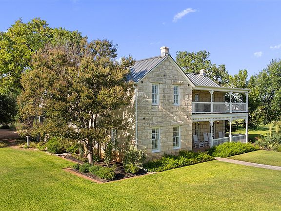 Situated on 52+ acres and 1,100+ feet of the Pedernales, this meticulously updated property includes structures dating back to the 1800s and is located just 6 miles from Fredericksburg. The 1906 built home is a limestone block salt box style typical of early Fredericksburg, now expanded to 4,000+ sq/ft w/4 bedrooms and 4 full bathrooms. Key features include a primary suite on the ground floor, large family room w/gas fireplace, comfortable sunroom, entertainer’s kitchen w/36” gas cooktop, large laundry room, wet bar w/ice maker and standing seam metal roof. Designer finishes include marble, granite, quartzite, and solid hardwood floors. Outside is a 2 bed 1 bath restored dog trot style guest house w/an outdoor cooking and large covered gathering area make this a favorite with guests. Adjacent to the primary and guest houses, the pool house is a hub for entertainment with a heated in-ground pool + hot tub, full bathroom with shower, wet bar and TV room with a collapsable door and wall of windows which opens to the pool patio where the outdoor kitchen and views of the Pedernales valley. A massive, insulated metal building with concrete floors, heaters, big ass fans and separate room ideal for a gym or yoga studio. Currently the building is used as a kids play gym with a trampoline, shuffleboard, gymnastics space, basketball hoop, 4-square, pickleball and other games. The ranch barn has both covered and enclosed space for comfortable shop and storing tools, equipment, tractor, trailers, camper or RV. There is also up to three stalls for livestock or horses with turnout room as well. Three water wells are on property with the primary well yielding 100+ GPM. The property is currently under ag valuation, fenced, cross fenced with current livestock of registered Texas Longhorns, scimitar horned oryx and axis deer. Pasture on the South portion of property routinely yields a significant number of round bales. Seller willing to maintain ag exemption by lease with new owner.