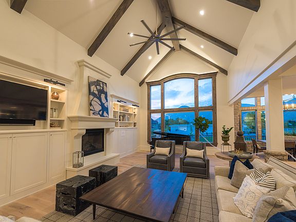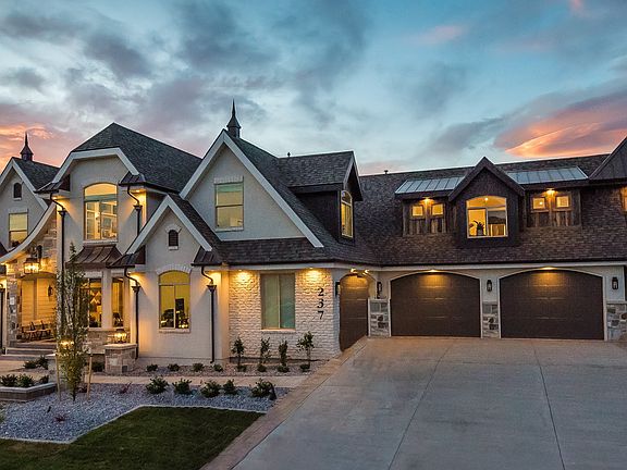 First Place in the Utah County Parade of Homes in 2017! French country home with custom features throughout. Two story entry with white oak flooring & sweeping staircase to the upper level. Parade of Homes' best kitchen! Dream kitchen which features custom cabinetry with hideaway walk-in pantry with french iron shelf and a freeze dryer, quartz and granite counters, center island with copper country sink & stainless steel dishwasher, stainless steel 6 burner cook-top gas range with double oven, can and custom lighting and stainless steel microwave with bread warmer. Mudroom area with lockers off the kitchen. Vaulted family room off kitchen with gas burning fireplace, custom built-in shelving with a hidden slide to the basement play area and access to deck and backyard. Large private office with French door off entry. Over-sized master suite complete with gas fireplace, large walk-in closet, clawfoot tub with beautiful windows, separate tiled shower plus his and her sinks and private laundry area. Upper level features an open study area, three Bedrooms feature built-in cubby shelves, dormer windows, and designer ceiling details. There is a two-bedroom full kitchen, laundry, office, MIL apartment above the garage. Fully finished walkout basement with an enormous family room and second kitchen, theater room, kids cottage with swing and mat, swings, plus guest bedroom and bath and large gym. Too many incredible interior and exterior finishes and extras to list. Perfectly situated on a 1-acre lot complete with animal rights and perfect landscape! large garage space. A Pre-Qual Letter or POF MUST accompany ALL offers.