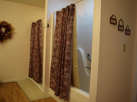 This home is built to be handicap accessible. Owner has made many updates. The home has new carpet in both bedrooms, all new baseboard and door modelings throughout, new flooring in kitchen/dining and living areas, new ceiling fan in the living room, new garage door and openers and partial fence. The bathroom has a tub and shower combo and a large walk-in shower.