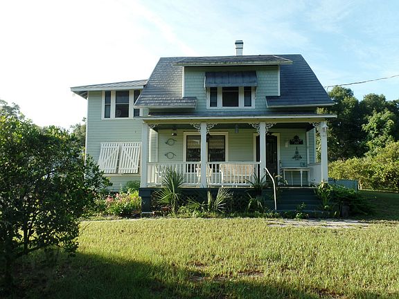This rustic, romantic 1920 farmhouse is located in rural NE Florida on 2.44 acres. The large property includes a 2200 square foot 2 story house, 2 car cement block garage, barn, outdoor washroom with shower, several storage sheds, numerous decks, and a decorative vintage windmill. The acreage has a fenced seasonal garden, papaya, avocado and citrus trees, passion fruit and grape vines, cactus and sun hemp. There are chicken coops, a pig pen, and honey bees. The parcel has one well for the house and a second well for irrigation with optional city water. The house interior first floor has a kitchen with pantry, dining room, TV room, living room, half bath, and small den on the first floor. The second floor has 3 bedrooms, bathroom, and long hallway currently being used as an office.