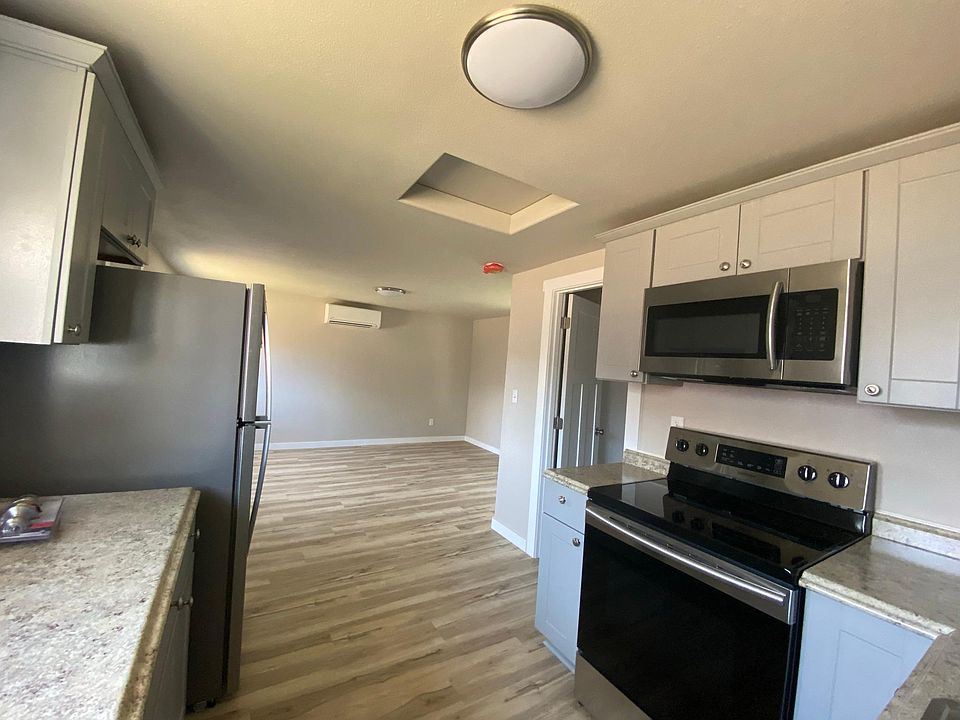 Newly remodeled ground level studio apartment in downtown Mossyrock. The Studio apartment is in the building in back. All new appliances, flooring, kitchen, and bathroom, plus energy efficient ductless heat pump. Rental includes an on-site private Storage Unit to store your things, Garbage, and 100Mbps Wifi. Off-street parking, and coin-op laundry on site. Walk to the grocery store, bar, park, or local restaurants. 11.3 miles / 15 minutes to Morton General Hospital. Rental includes Wifi and Garbage. Tenant responsible for water/sewer and electricity. Credit and Background check $35 per applicant. To expedite your application, please provide as much information about yourself as possible when you inquire.