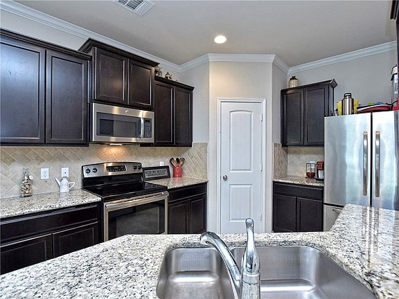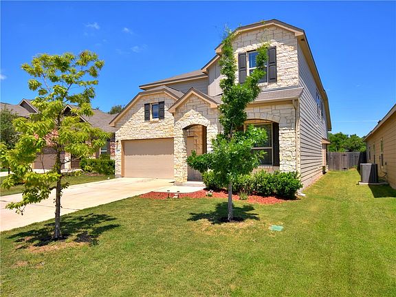 This beautiful home has 5 bedrooms (2 down/3 up) or 4 bedrooms plus an office and 3 full bathrooms. Granite counters and stainless appliances in the kitchen. Home is built energy efficient = low utility bills. Downstairs master with enormous walk-in closet. Large master bath has double vanity and separate tub & shower. Large secondary bedrooms with walk-in closets. Huge upstairs game room. Covered Patio, Full sprinkler system. No neighbors behind. Excellent Leander ISD!
