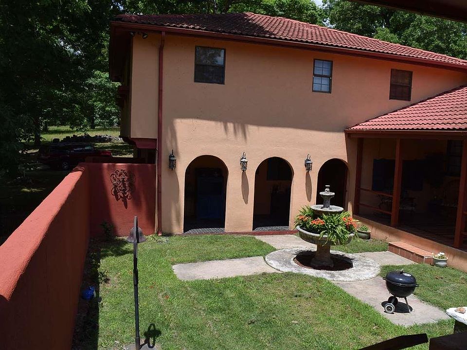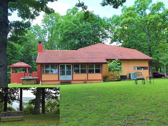 Remarkable Mediterranean style home overlooking White River! Featuring: arched breezeway, courtyard, fountain, viewing veranda and secluded river bluff view. Wonderful floor plan, 3,562 sq ft. 4 BR 2.5 BA, 3 levels -updated with wood flooring, separate family room, lower level rec. room, beautiful kitchen with large center island. Perfect space for family and friends to enjoy the beauty of the Ozarks! 2.4 acres m/l with 2 mile view of Famous White River. Located in Fairview, Marion Co. AR.