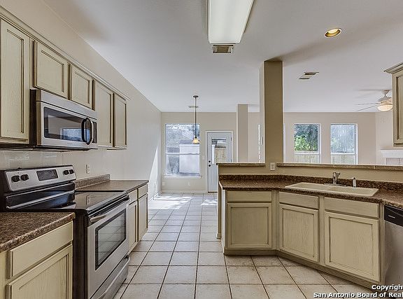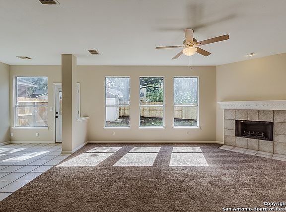 This Cibolo two-story offers a patio, a fireplace, and a two-car garage. Upgraded features include fresh interior and exterior paint, and new carpet. Home comes with a 30-day buyback guarantee. Terms and conditions apply.