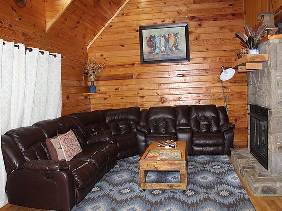 Log cabin in the mountains sitting on 1.6 acres of unrestricted land with a flat yard. Has some views could trim a few more trees and it would be a great view. The house is move in ready comes completely furnished. Has a covered porch with a hottub and firepit. Out building. Nice bathroom with ceramic tile and whirlpool tub. Has stone fireplace. Has a bonus room that is a game room right now. Close to everything. Is on Rental Program with Great Smokies Cabin Rental. (Twin Oaks) up