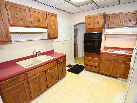 Great opportunity for investor or someone who needs a huge house! Enter through an enclosed heated front porch into a large entry foyer with high ceilings and stained glass window. The first floor includes: Side dining room with decorative fireplace-Large eat in kitchen with door to deck and all appliances-First floor bedroom or office with french doors to deck-Updated full bath! The open staircase leads to a second floor with 3 beds, a large sitting area and 2nd updated full bath. But wait, there's more! The 3rd floor is finished with another large living space and walk in closet. Hardwood flooring, some pine flooring, replacement windows throughout, fenced backyard, gardens and shed! So much value here!