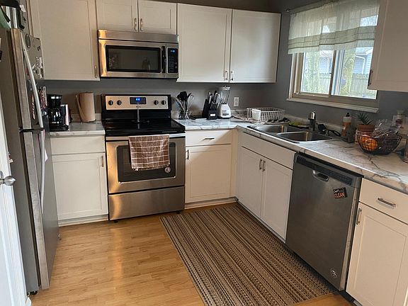 Recently updated kitchen with new cabinets, countertop, and new appliances. New bathroom floor.