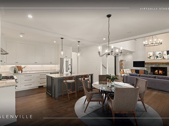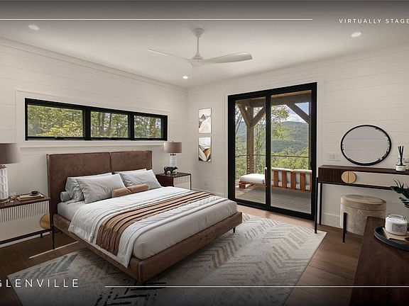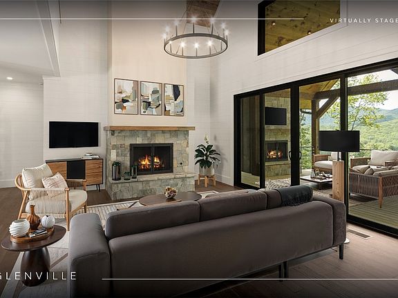 Set on 2.3 gentle acres just minutes from the pristine Lake Glenville, this stunning new construction offers an elegant mountain retreat designed to capture sweeping views of the Western North Carolina landscape. The three-bedroom home, thoughtfully planned over two levels, welcomes you with a grand great room featuring a soaring two-story vaulted ceiling and an expansive porch. Both spaces are anchored by inviting fireplaces, perfect for enjoying the crisp mountain evenings. The open-concept kitchen, equipped with Thermador appliances, flows seamlessly into the dining area, creating a warm, versatile space ideal for both intimate family meals and entertaining friends. Upstairs, a spacious loft leads to two generously appointed guest bedrooms, each with ensuite baths for the ultimate in privacy and comfort. With an attached two-car garage and gentle topography surrounding the home, this property combines convenience with natural beauty. Completed in 2025, this residence is designed to offer a refined lifestyle with a perfect blend of mountain charm and modern sophistication. Virtually staged photos are included to showcase the potential of the property.