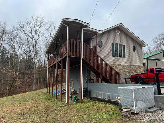 Awesome lake home or full time living! Even has a 30x60 garage to store your boat in!! Enjoy seasonal lake views right from the porch. Upstairs you have a spacious kitchen with plenty of cabinets and kitchen bar, 2 bedrooms, and 1 full bathroom. The downstairs has an additional bedroom and half bath and also bar. The detached garage has a concrete floor with drains, a half bath, and a wood burning fireplace! All kitchen appliances stay. Within minutes to Wolf Creek Marina and multiple boat ramps!