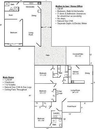 2 homes on 5.2 acres. First home has 3 bedrooms and 2 baths. 2nd home is newer mother-in-law apartment with bedroom, bath, dining areas. Property also boasts a 2 car detached garage and a 60X40 barn with 4 stalls and equipment lean-to shed. Fenced.