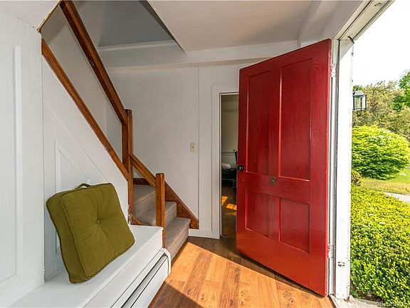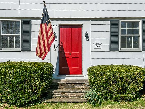 Just a few minutes from the Farmington River is this charming 1765 colonial and historically significant home with barn situated on 1.5 acres close to the darling town of Collinsville as well as nature trails designed for hiking and biking. This was once the home of John Woodford, an earlier settler of Farmington. The main level has a spacious sun filled formal dining room serviced by the relaxed eat in country kitchen which was recently updated. In addition there are several hidden FPL's that can be restored. According to the Avon Historical Society, The house had been a tavern & cider mill in its early history. It was thought to have been a stagecoach stop** it may have been an inn **. It was even once used as an interim school house. There are hand-hewn wood oak timbers in the attic & basement as well as a huge great stone chimney through the center of the house; in addition, the basement walls are also made of stone. A canning cellar in the basement is also true to period. Another curious feature, a cupboard like door on the 2nd floor adjacent to the massive chimney, with a space that was designated to smoke hams. Come discover this opportunity as this home deserves your attention and personal touches.