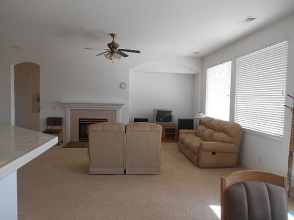 This nice golf course home is very comfortable with open great room floor plan. also has an office or den. Tiled countered gas FP nice carpet. The location is wonderful looking out the back is views of the 8th green with pond and total mountain views!! Must see!