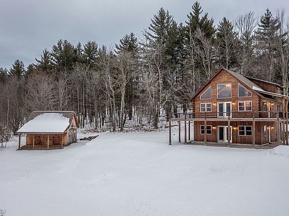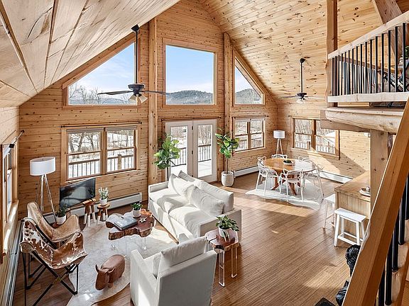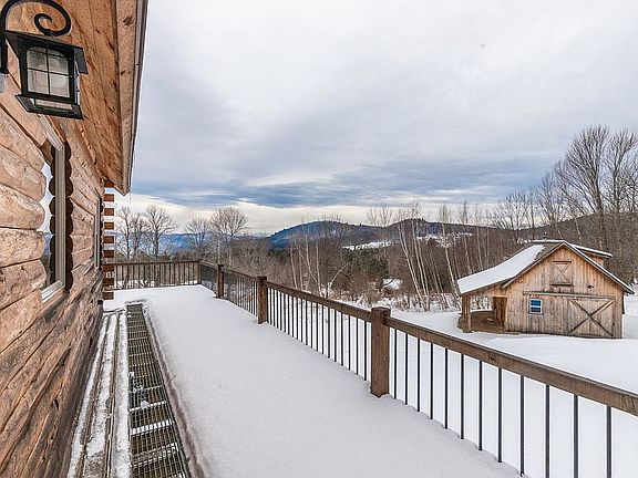 Welcome to your turn-key dream home with epic sunsets amidst an outdoor lover's paradise in the mountains of Vermont! This pristine and stunning alpine chalet-style log home custom-built in 2015 features cathedral ceilings with an abundance of massive windows, flooding the home with natural light, and is ideal for remote work from home or as a peaceful retreat getaway. Being offered furnished, the house is move-in ready - just show up with your toothbrush! Or rent it out without having to lift a finger! Situated on 6+ acres at the end of a quiet private dirt road with stunning panoramic mountain views, an insulated 2-stall horse barn with power, water, and hay loft was added in 2018. From the home’s large wrap-around deck, open-concept great room, or office on the upstairs loft landing with antler chandelier - it’s hard to pick which vantage point to take in the views! The perfectly laid out kitchen, with double-oven gas range, large french-door refrigerator, deep cabinets and pantry, plus spacious island with a gorgeous custom live-edge wood slab, is ideal for entertaining. The home office, with high-speed fiber internet (up to 800Mbps), comes equipped with a large L-shaped electric standing desk, situated to take in the panoramic views. The large, insulated walk-out unfinished basement with high ceilings and radiant heat floors is plumbed for a bath and has a home gym with a TV on the wall and commercial-grade NordicTrack equipment recently purchased in 2022, plus ample space for a mud room and all your outdoor gear. Outside, the house is already wired for a hot tub. Snowshoe right out your door and XC, downhill, or backcountry ski at nearby Smuggler's Notch, Stowe, and Jay Peak. Easy access to mountain, road, gravel and fat biking. Mountains for hiking in all seasons and golf in summer. Swim, kayak, paddleboard and canoe in the nearby rivers and lakes. 45 minutes to BTV Airport. 2 hours from Montreal. 3.5 hours from Boston. [Private road - no drive-bys; viewing by appointment; qualified buyers only.]