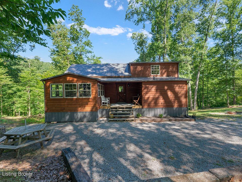 Welcome home to this charming one of a kind Furnished Lake house At Nolin Lake including your own Dock that sits on 1.5 Acres!! This home is set up for entertaining with an Open floor plan. Vaulted Great Room & Large Dining Room with Lots of Natural light! Great Entertaining Space! Wonderful kitchen with loads of cabinets and counter space. The first floor also includes a large bedroom and a full bathroom with a stand up shower and laundry area. The second floor offers a large loft area/ Bonus room that could be used as a second bedroom. This home also has an Unfinished basement waiting for your finishing touches as It is ready for a second bathroom and more entertaining space. Give me a call today to schedule you own private showing!