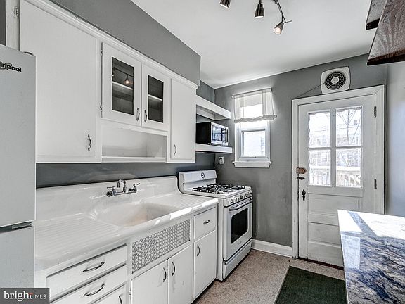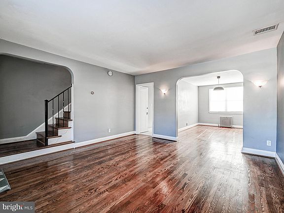 This is a wonderful opportunity to own a classic townhome on a great street in Towson walkable to downtown stores and restaurants, local schools and Towson University, the library and TMV park. The home welcomes you with a covered front porch and warm refinished wood floors throughout the first and second levels. The main level has a spacious living room, dining room, and nice white kitchen with a vintage drainboard glazed cast iron sink and a gas range. The kitchen opens to a new large and low maintenance Trex deck that gets full sun. The deck leads to a spacious enclosed grass yard. Upstairs are three bedrooms and a full bath with classic black and white tile in great condition. The lower level is a large, open space with new LVP flooring and has an additional full bath with walk-in shower, a separate laundry/utility room, 4 windows, great ceiling height, and a door that exits to the rear yard. NEW HVAC installed (central air) in 2019. Well maintained slate roof. This is a great home at a great price. Multiple comps in the neighborhood over $300K in the last year.