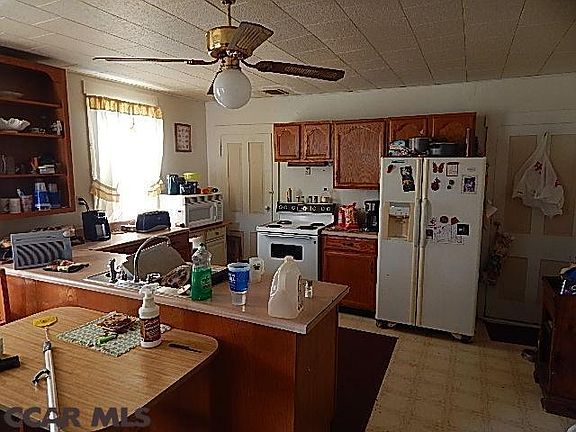Large home in need of some TLC. Half bath and laundry on the first floor, enclosed rear porch/workshop attached to kitchen. 4 bedrooms and full bathroom on second floor. First floor offers an additional bedroom with dressing room or baby room. Home has all the making of country charm, just needs fresh updating.