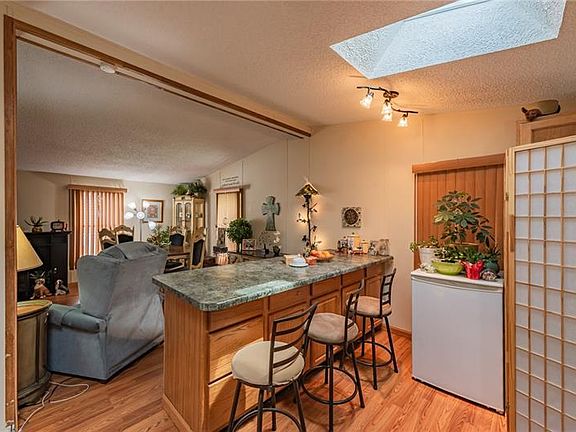 Very nice updated mobile home located in the Pleasant Heights Community of Homes, large open floor plan with pantry and island, newer heat pump, roof, h20 tank, updated bathroom, light fixtures, exterior shed with built in shelving, great home, covered front porch, wooded lot and 2 car parking space.