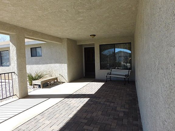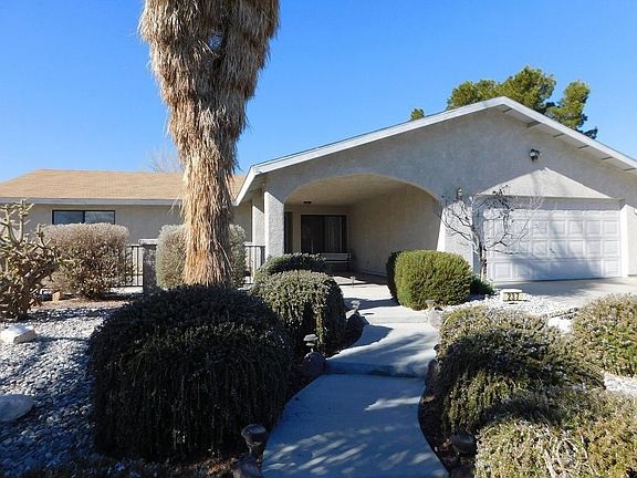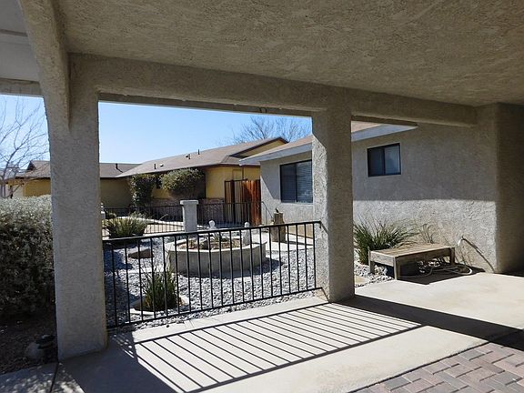 Built by Holiday Construction on .20 acre lot.Magnificent xeriscape in front yard w/rosemary & secret fountain.Extra wide front patio.Inside tiled entry welcomes you to super size carpeted living rm & dining rm w/2 fans.All finished ceilings;dual pane windows.Family rm featured large brick fireplace w/raised hearth & mantle;wood flooring runs thru to kitchen.French dr w/sidelights opens to yard.Generous kitchen has breakfast bar; granite look formica counters,smooth electric cooktop,mw,dw,ss sink w/water filter;recessed lites.Pantry & cupbds have pull out drawers & lazy susan.Laundry rm on way to man's garage:lots of storage & sink.Down hallway are 2 generous guest bdrms:one carpeted,one tiled.Guest bath has tub,dual flush toilet & pendant lites.Lge mstr suite has walkin closet,tiled floor;lge shower w/dual flush toilet &new lites.Gorgeous back yd has covered patio;2 sheds;gazebo wired for spa.Terraced backyd has grass,xeriscape,olive tree,palms.Graveled side yd.Paved RV parking