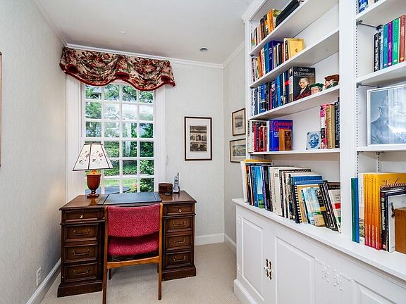Stately Georgian Colonial with historically noted architecture in desirable Newtonville location. Each elegant and spacious room features carefully preserved period details. An abundance of natural light accentuates the home's character. Oversized front door welcomes guests into a large, gracious foyer with turned staircase. The formal dining room centers around a beautiful fireplace with wainscoting & built-ins. Updated eat-in kitchen with adjacent office allows for today's multi-tasking. A library with custom bookshelves, sunroom with vaulted & beamed ceiling, and half bath complete the 1st floor. A romantic master bedroom boasts a fireplace and en-suite bath. Three additional bedrooms and second bath round out the 2nd floor. Lower level family room complete with kitchen offers plenty of space for gym, playroom, or media room. Manicured, private grounds provide ideal setting for outdoor relaxing & entertaining. Close to Newtonville shops, restaurants, schools, and commuter rail.