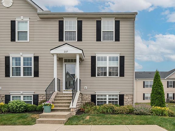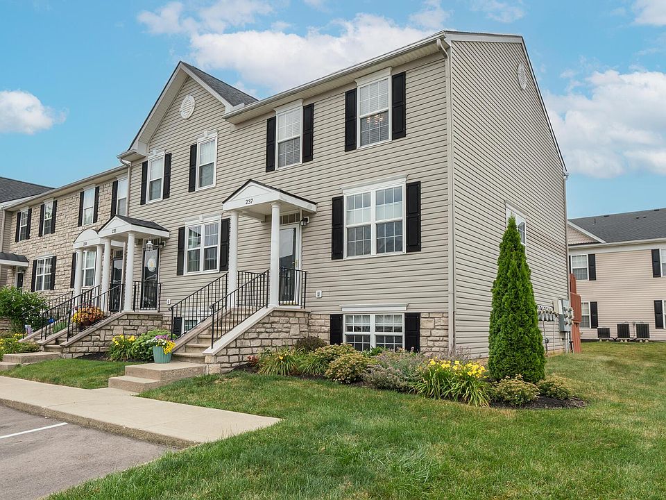 Awesome opportunity for this affordable end unit condo in Big Walnut Schools! 2 story unit with finished basement! Upstairs there are 2 large bedrooms with en suites! On the main level there is an open concept living room that flows into the spacious kitchen and eating area. Lots of natural light comes in from the private fenced deck. Kitchen has butcher block counter tops, plenty of cabinet space with a huge corner pantry! There is also a half bath on the main level. Downstairs you will find another open family room, a recently updated half bath and a laundry/utility room. Great storage in this home. 2 designated parking spots in front of the condo with overflow street parking. Conveniently located just off Rt. 3 close to retail, schools and parks! Schedule your showing today!
