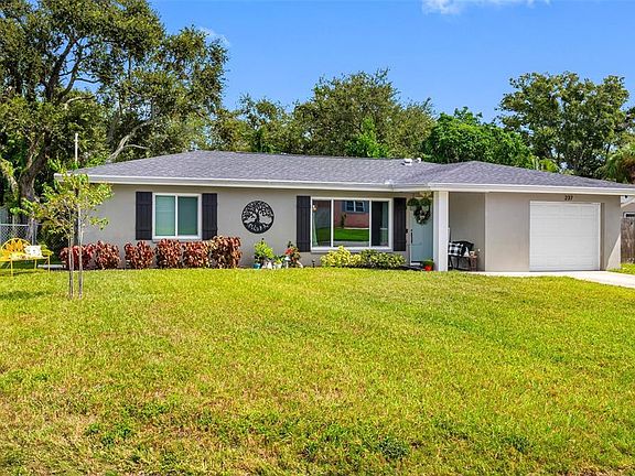 Situated in the desirable BELLEAIR BLUFFS community, this beautifully remodeled home offers 1,352 square feet of modern living space with a one-car garage. Now available at a NEW PRICE, this residence is surrounded by well-kept, upgraded homes in one of the area’s most peaceful and established neighborhoods. Just two blocks from the Intracoastal Waterway, the home sits high and dry in NON-FLOOD ZONE X and outside any evacuation zone. Updated with quality finishes throughout, the kitchen was completely redesigned in 2022 with quartz countertops, a custom stone backsplash, stainless steel appliances, and a farm sink. A built-in coffee system with filtered water adds a touch of luxury. Continuous wood-style flooring, smooth ceilings, and recessed lighting enhance the living areas, while the Florida room provides flexible space for an office or possible third bedroom. Recent upgrades include a new roof and exterior paint (2022), hurricane-rated windows and doors, updated electrical throughout, solar attic fans, and a new garage door. The HVAC system was replaced in 2018 and features a smart thermostat. Plumbing has been professionally scoped and fitted with two cleanouts, providing peace of mind and easier maintenance in this mid-century home. Additional features include a Ring doorbell with three cameras, washer and dryer (2021), modern fixtures and fans, and remodeled bathrooms with marble vanities and tiled showers. The backyard is designed for FLORIDA LIVING, offering space for dining and entertaining, a fire pit, mature landscaping, and a large storage shed. A 220 line remains from a previous hot tub, making it easy to add a spa if desired. Conveniently located near Mildred Helms Elementary, the Pinellas Trail, boutique shops, and local restaurants, this home is also just minutes from the Pelican Golf Club, Belleair Country Club, and award-winning Gulf beaches. This Belleair Bluffs residence combines thoughtful design, modern updates, and a quiet neighborhood setting—an exceptional find in one of Pinellas County’s most sought-after communities.