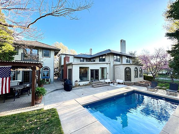 Wichita's Historic College Hill offers you this rare opportunity to live in this amazing open floor plan garden tour home that embraces historic integrity with modern updates of a completely remodeled home. Entering the foyer of this 1927 historic stucco, two-story home you are greeted with vast original hardwood floors leading into the expansive living room. This spacious living area welcomes the light from large windows, adorned with crown molding and a Batchelder fireplace and custom built-in cabinetry. A sunroom next to the living area boasts heated slate floors with enormous windows that overlook the lush gardens filled with red buds, magnolias, cone hydrangeas, rose bushes and raised veggie gardens. The opposite side of the foyer is the vast dining room, perfect for hosting large dinner parties or intimate meals. The extended hallway opens to a lovely powder bath embellished with beautiful custom wallpaper and wainscoting. New white oak wood floors lead into the open concept gourmet kitchen. This chef's dream kitchen is completely remodeled and includes a walk-in pantry, two ovens, and an enormous quartz island. All new high-end appliances enhance this amazing eat in kitchen. Main floor laundry is conveniently located right off of the kitchen with built in lockers, storage, and sink. The open concept great room includes a spacious family room surrounded by immense windows overlooking the ideal outdoor entertainment area including a swimming pool with a new liner and a pergola. Leading up the grand stairway you will discover 4 tranquil oversized bedrooms, accompanied by 2 exquisitely remodeled bathrooms. The main bedroom ensuite provides the perfect escape in this spa-like retreat and includes heated floors. Storage galore can be found throughout the home, including a 100 square foot walk in closet of the main bedroom. The massive 1,600 garage provides a pool party hosting venue which extends right off the pool patio and includes a wet-bar area with tiled floor and large family area upstairs. In addition to the renovations throughout the home a Da Vinci roof compliments the exterior of the home. A new tankless water heater and new A/C are just a few more of the modern conveniences this home provides. Welcome to your oasis, all of the amenities of new construction in the ideal historic setting of College Hill! Recent updates: •Sod (2022) • Hunter Douglas blinds in 3 bedrooms & staircase (2021) • STAINMASTER carpet upstairs (off-white) & stair runner (navy w/ pattern) (2021) • Two TRANE air conditioners and one new furnace (2022) • Gas grill line added to patio (2022) • Painted white trim (dining room & staircase) (2021) • Pool liner (slate blue) (2022)