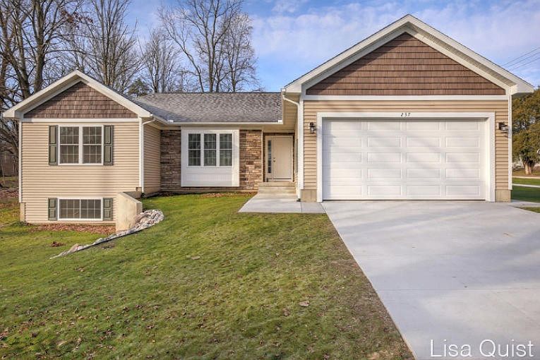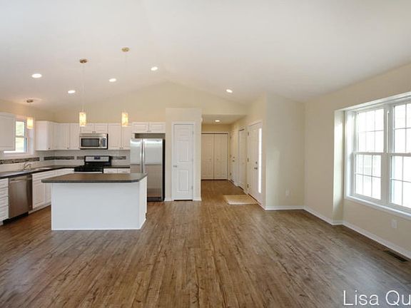 Brand new 3 bedroom, 2 bath ranch on a corner lot in the City of Rockford, walking distance to downtown shops, restaurants and the Rockford Dam. Two stall attached garage and ready to finish lower level plumbed for a third bath. Open great room with vaulted ceilings. Kitchen with snack bar, eating area, white cabinets, dark counters, subway and glass tile backsplash, stainless appliances and barn wood style flooring. Split bedroom design with master suite on one end and two additional bedrooms and full bath on the opposite side of the home. Deck off the kitchen eating area open to large yard. Rare find in Rockford! See it today!
