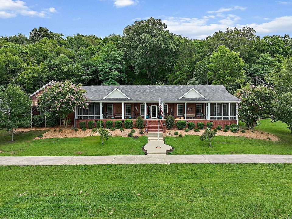 Absolutely beautiful views! You will not want to ever leave your many porches! This all brick home on 12.79 acres has it all, Mostly all one level with only the bonus room and bedroom suite upstairs with private balcony! All hardwood floors, amazing in law suite with full kitchen, nice living/dining area, bedroom with full bath and private entrance with enclosed back porch! Screened porches on both ends of home, huge covered front porch, 85x 21 imp shed 24x24 shop10x12 shed/fruit trees, pond/raised garden/storm cellar in garage. Huge Storage room is 80x16 floored area off bonus room and could be finished out easily or just have this as a fantastic storage area. This home has it all!