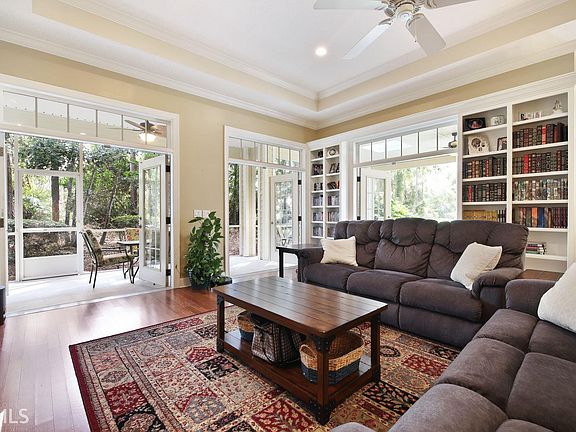 Stunning home with all the extras on the golf course in Osprey Cove. Home has 4 BR, 3.5 BA, gourmet kitchen with granite, walk-in-pantry, prep island w.sink, built-ins, wine storage, open to the family room so you can be with your family or guests. Huge office/library. Separate suite upstairs with private bath. Master suite is large, bright and sunny with a glamorous bath, and an enormous closet that you MUST see. Crown molding, tile, hardwood floors, trey ceilings, architectural details, a large screened outdoor living area that opens to the house from several french doors makes for a floor plan that is designed for entertaining. * Laundry Room Access through owner suite and hallway. Pipe gas, no flood zone