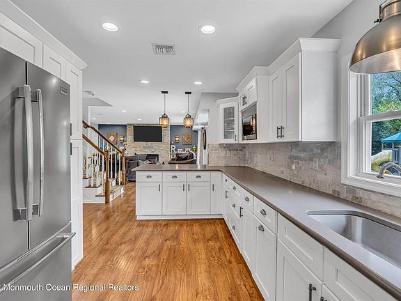 This is a Coming Soon Listing and cannot be shown until 5/21/22 Turn key 3 bedroom, 3.5 bath Custom Colonial in Lincroft. Chef's kitchen with commercial grade stove/oven, Viking hood and honed quartz countertops white shaker cabinets and gleaming hardwood floors.. Open Concept living space flows into the dining room and great room with a gas fireplace. Upstairs large primary bedroom , attached sitting room, spacious walk in closet and en suite bathroom with oversized shower and separate soaking tub. 2 large additional bedrooms with shared private bathroom and washer and dryer in hallway. Full attic with 7 foot ceilings. Finished basement with powder room. Fenced in backyard, concrete patio with outdoor kitchen/bar, gazebo, above ground pool and solar panels. Close proximity to park and ride, shopping, dining and Jersey Shore beaches.