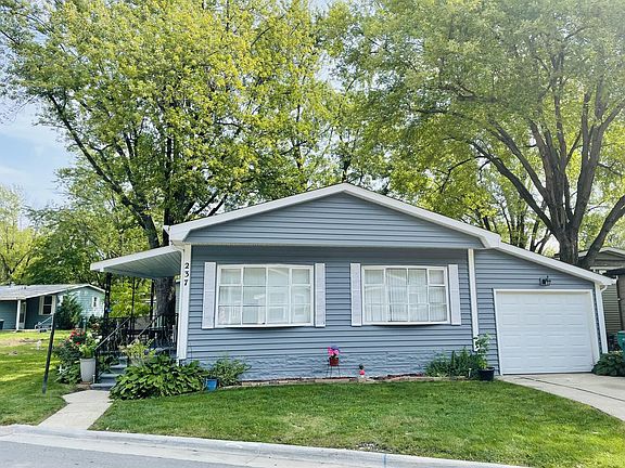 ** HIGHLY MOTIVATED SELLER OPEN TO OFFERS! ** SELLER WILL ALSO PAY BUYERS FIRST MONTH'S LOT RENT IF UNDER CONTRACT BY 10/31! ** Enjoy maintenance-free living with a nice view in this 55+ Active Adult community of Willow Lake Estates! Enjoy your morning coffee on your large covered front porch overlooking beautiful landscaping and a lush quiet yard. Great Open Floor Plan with loads of windows that bring in lots of natural sunlight. Large living room with fresh carpet. Galley kitchen with table space. The master offers a private bath and a walk-in closet! Convenient Laundry just off kitchen. 2 car tandem garage. New furnace and central air! Enjoy access to Willow Lake one block behind. The site rent includes regular grass cutting, snow removal, use of the private stocked lake, community clubhouse with fitness center, library, and heated outdoor swimming pool. Easy access to I90 and the CTA line. Close to shopping and dining.
