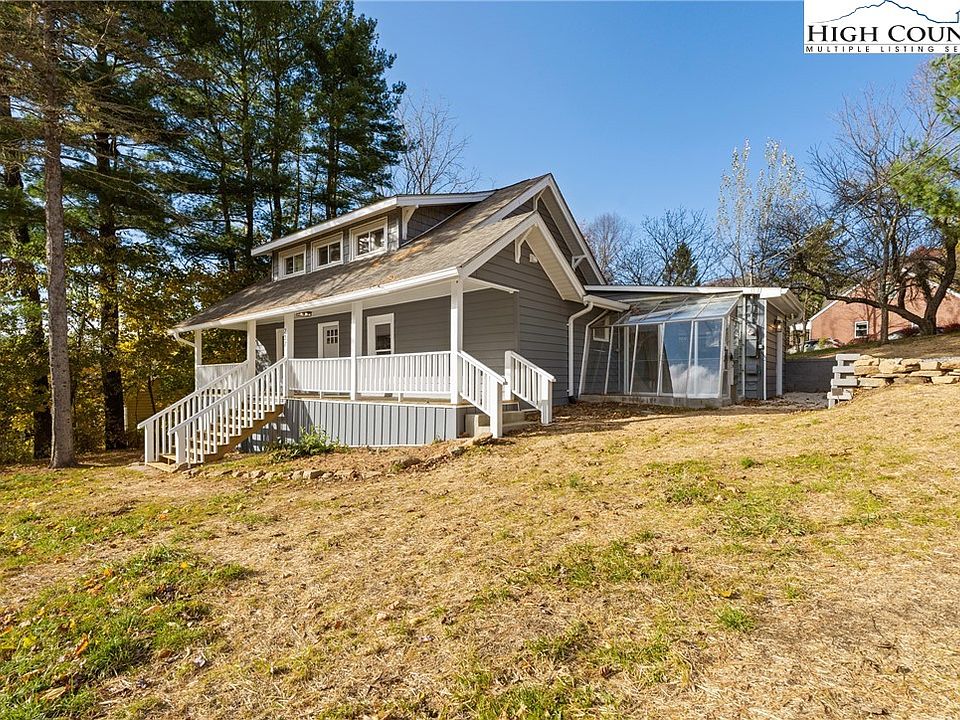 Completely transformed Craftsman-style home within walking distance to downtown Boone, Appalachian State University, and the Farmers Market. This property has been extensively rebuilt from the ground up, including the foundation, all-new electrical and plumbing, added HVAC, new floor joists on the second level, and fully renovated kitchen and baths. Inside, refinished original hardwoods, stylish tile, and luxury vinyl plank complement the updates throughout. The main level features a spacious living room, brand-new kitchen with modern cabinetry and appliances, bright dining/sunroom, large primary suite with walk-in closet, an additional bedroom, and a full bath. Upstairs offers two more bedrooms and another fully rebuilt bath. A new primary en suite, three new walk-in closets, rebuilt porch decking and stairs, and numerous structural upgrades add comfort and longevity. Nearly every element of this home is new or refreshed, including HVAC, plumbing, electrical, flooring, kitchen, baths, and more—delivering the charm of a classic Craftsman with the reliability of modern construction. Move-in ready, filled with natural light, and situated in one of Boone’s most desirable neighborhoods. Full list of improvements available.