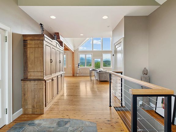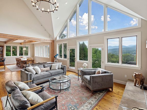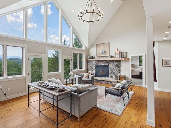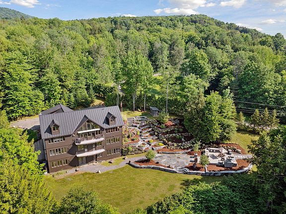Expansive westerly views and spectacular outdoor living amenities are the focal points of this well-designed home. The design strategy was to accentuate the views by having the main level on the upper floor. Huge windows, cathedral ceilings, and an open layout create a light and airy feel across the entirety of the main level. A large, stone fireplace is the centerpiece of a spacious, yet cozy living space, which seamlessly blends into the dining and kitchen area; each situated to maximize the views. Also on the main level, is a private, primary bedroom with an amazing vantage towards Nebraska Valley. One floor down are four bedrooms and two full bathrooms, perfect for accommodating guests or a growing family. Access the walk-out lower level via stairs or the elevator, where you will find a generous entertainment room purposefully equipped with all the conveniences, including a wine cellar. The exterior features incredible, terraced gardens with meticulous stonework, offering a picturesque setting for relaxation. Enjoy the warmer months on a massive outdoor patio, complete with a wood-burning fireplace and an outdoor kitchen, making it the ideal space for hosting gatherings and enjoying the beautiful surroundings. Additionally, there is a one-bedroom apartment above the garage, providing extra space for guests or rental opportunities. This home is optimally located just south of Stowe village with easy access for commuting and I89 and Stowe Mountain Resort.