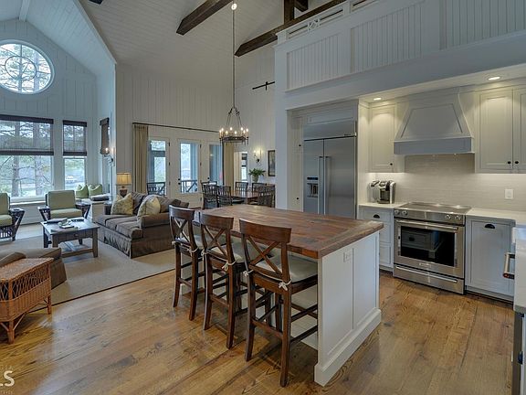 New construction on Lake Rabun. 6 bdrm/6 ba home. Conveniently off Lake Rabun Rd. The home was finished in 2017.Secluded approach brings you to level entryway. The board/batten exterior is accented by bark siding and laurel rails.The main floor offers a master bdrm/bath, a chef's kitchen and pantry, dining and living area with a stone fireplace, a guest bdrm/ba, office, laundry room, and mudroom. Adjacent to the main area is a 2 story vaulted screen porch with a FP. The lower level features a great room with fireplace, a second kitchen, second laundry room, and a lower screen porch with a hot tub. An additional bdrm/ba and 4 bunkbed room.Stone steps lead to the 2 stall boathouse/dock.Another guest bdrm/ba with an attached sleeping loft is located upstairs.